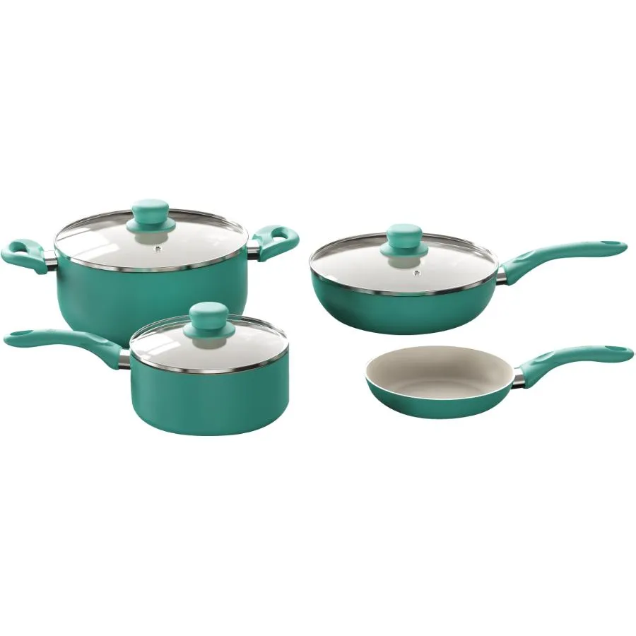 Greenlife Essentials Ceramic Non-Stick Induction Cookware Set with Glass Lids - 7 Piece
